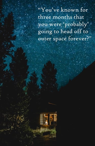 Sarah's husband has accepted a position on the next shuttle to Mars, leaving her with the decision to pack up her life and their children to go with him—or lose him forever.